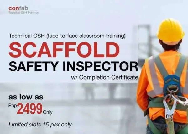 With this SCAFFOLD SAFETY INSPECTOR TRAINING, you get an all-in-one package of knowledge and skills ready to be your expertise in managing OSH in scaffold-related activities. This course is an 8-hr workshop-type course wherein you will be able to practice how to calculate the SWL capacity and understand the safe scaffold design concept.